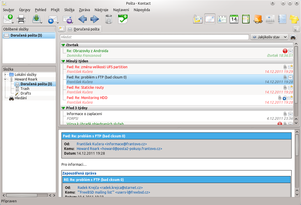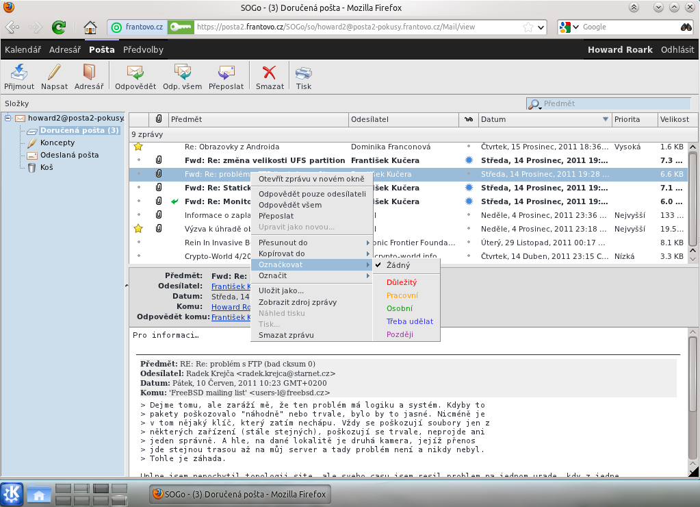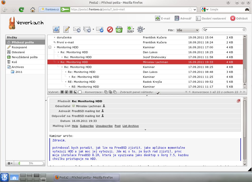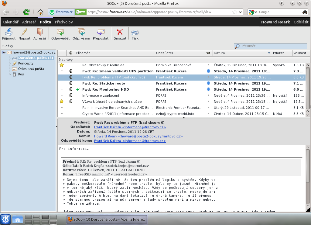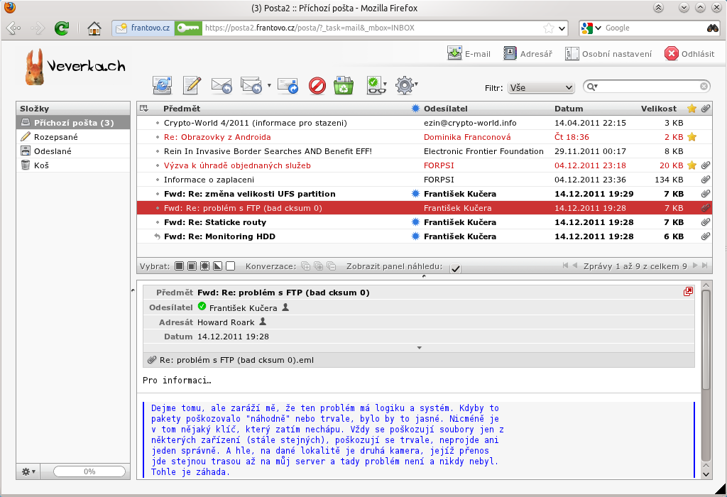 Méně nároční uživatelé mohou použít jednoduché webové rozhraní RoundCube: